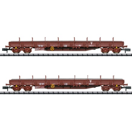 Die neuen MINITRIX Modelle bilden zunächst zwei dieser Varianten ab. Die komplette Neukonstruktion ist äußerst filigran ausgeführt. Das 3er Set gibt drei gebremste Wagen mit bzw. ohne Bremserhaus wieder.